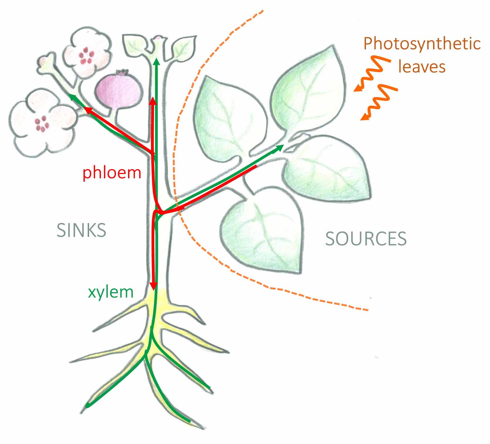 In higher plants, carbon that is assimilated by photosynthesis in photosynthetic organs is distributed, mainly as sucrose, in the other organs, depending on demand. The process of carbon allocation is essential for plant growth and development. It is also critical for the production of plant biomass, yield and quality. A strong interplay exists between carbon allocation and sugar metabolism, depending on plant organs, and on the environmental conditions, and the regulation of carbon allocation is critical for plant responses to biotic and abiotic stresses. My research aims at understanding the molecular mechanisms controlling carbon allocation and regulating this allocation in response to environmental constraints.